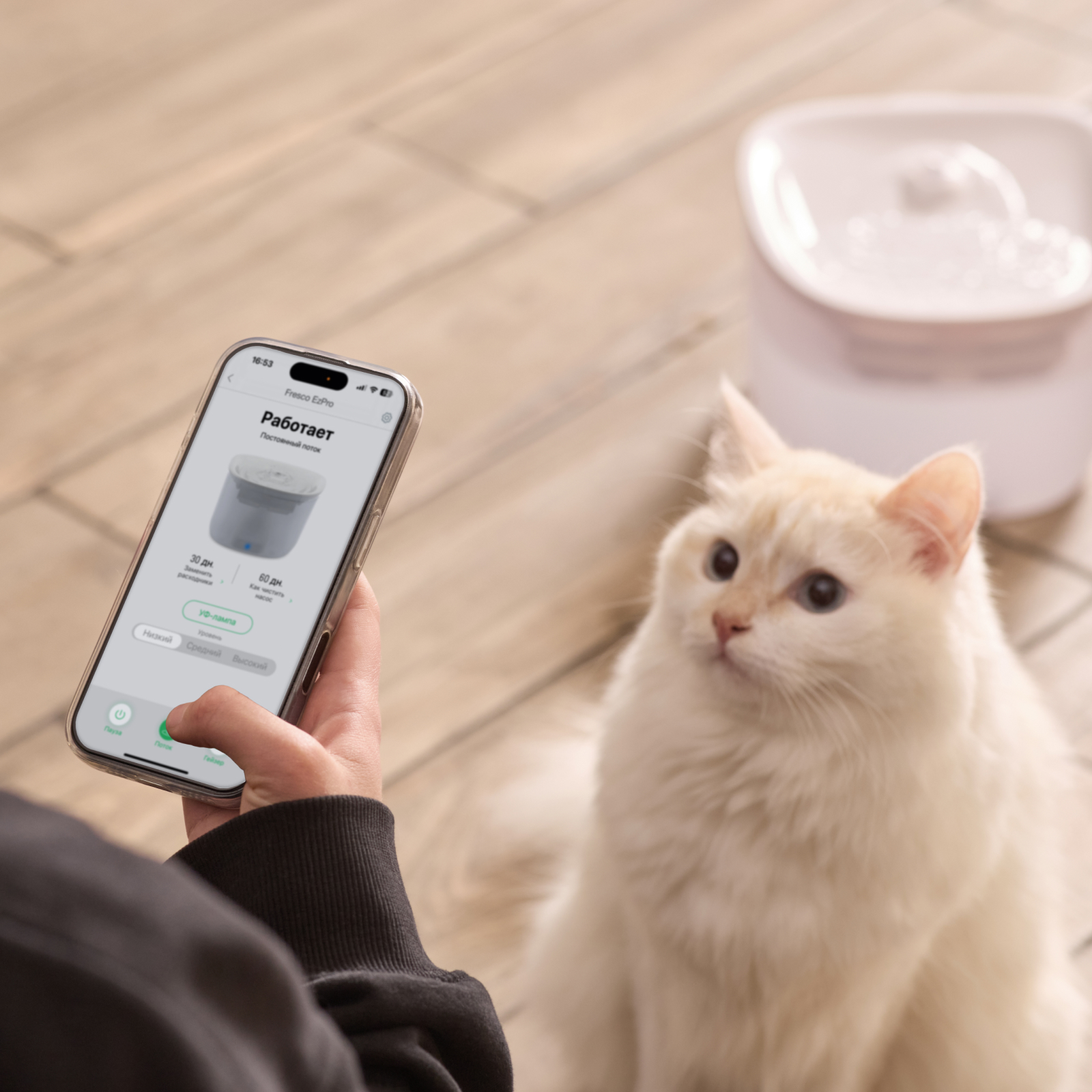 Fresco EzPro управляется через приложение Petoneer по Wi-Fi (2,4 ГГц). Здесь можно настроить время работы, а также выключить LED-индикатор, если он мешает вам ночью. Приложение предупредит, что пора долить воду или почистить фильтр насоса.