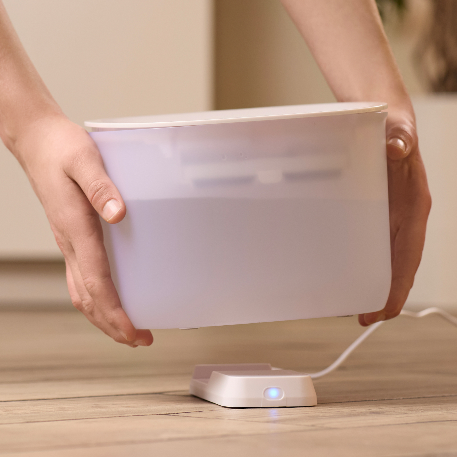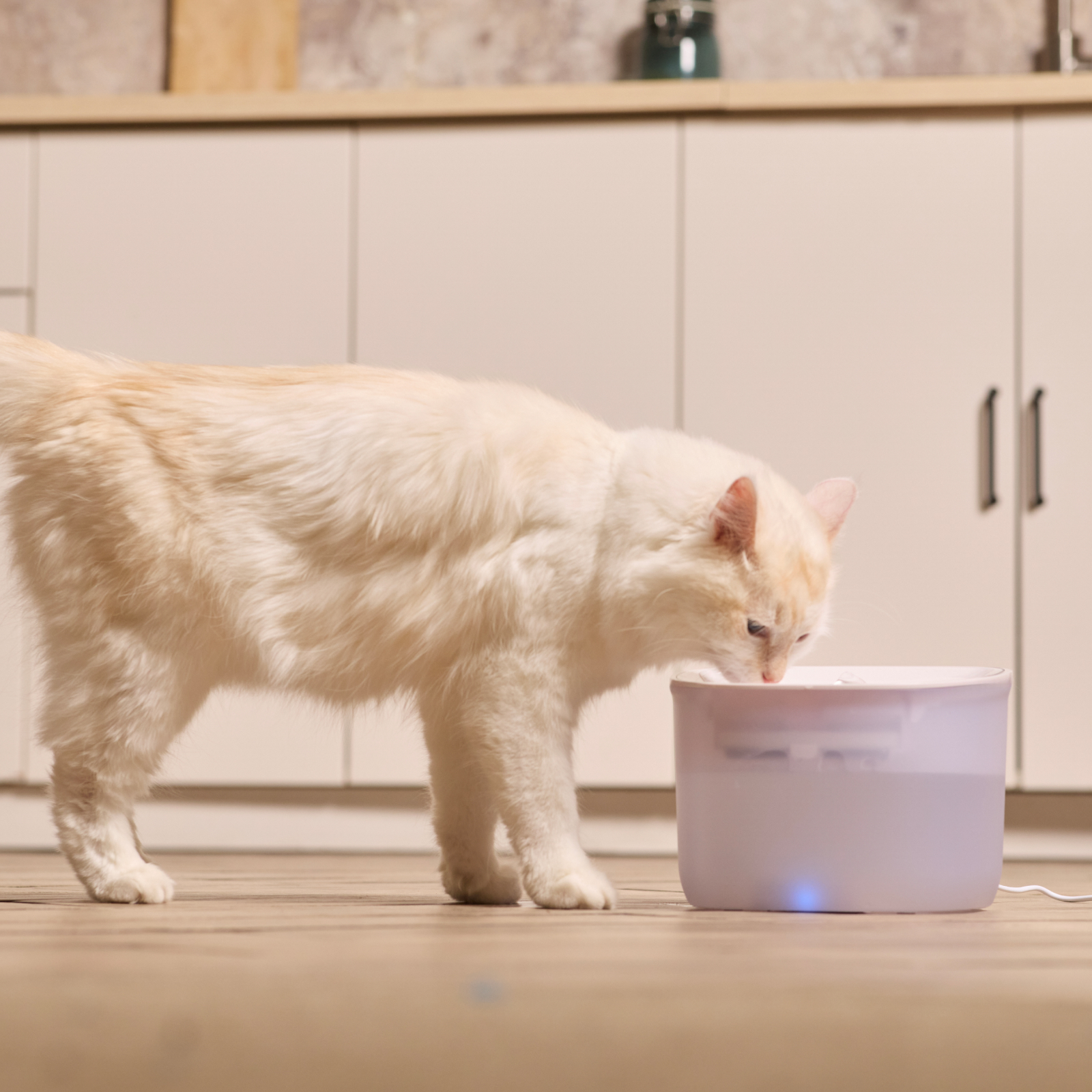 Умная поилка-фонтан Petoneer Fresco EzPro обеспечивает питомца постоянным доступом к чистой питьевой воде. Система сменных фильтров с 4 ступенями очистки удерживает мусор, шерсть и соли жесткости. Объем резервуара — 2 л. За уровнем воды можно следить в приложении или через стенки резервуара. О низком уровне предупредит и световой индикатор.