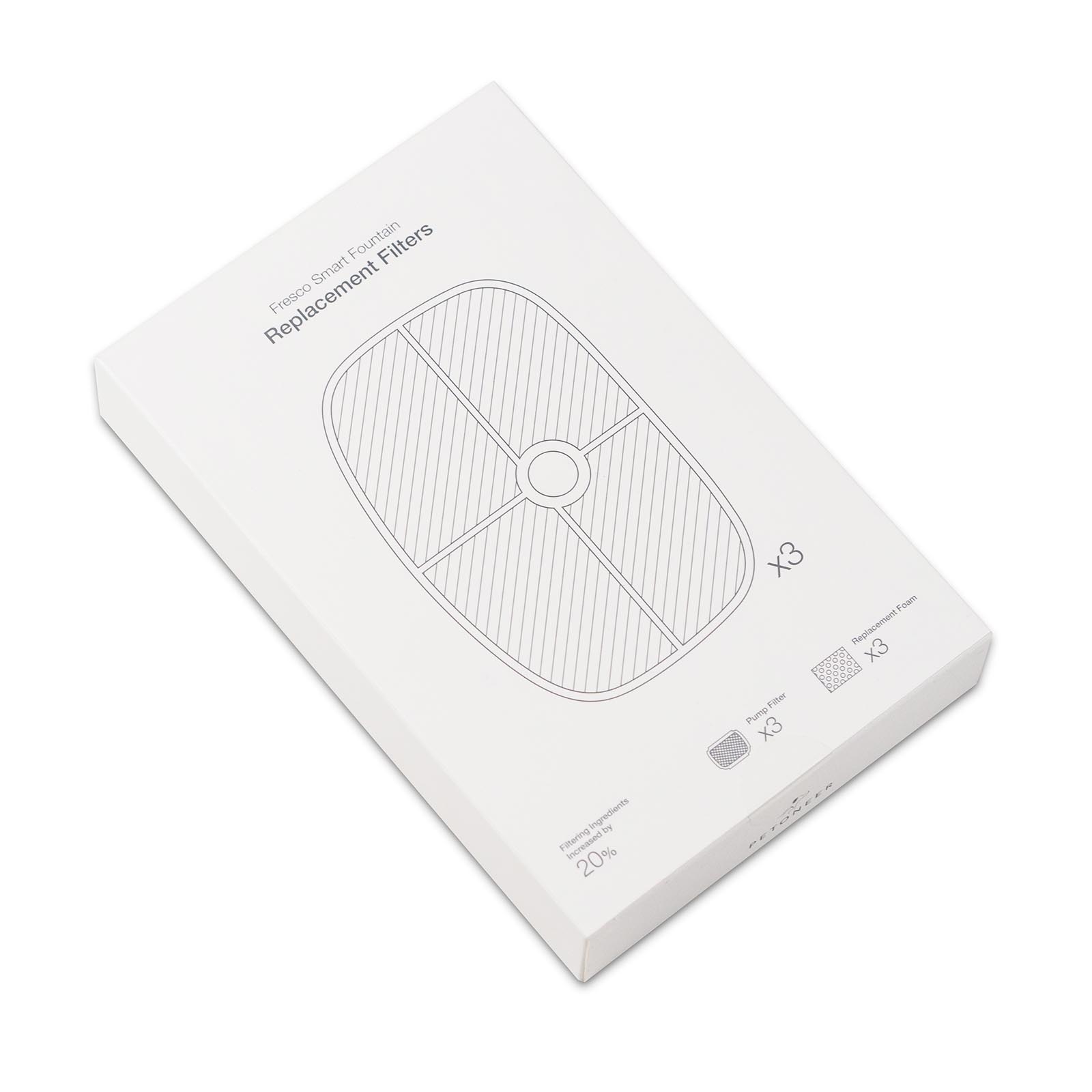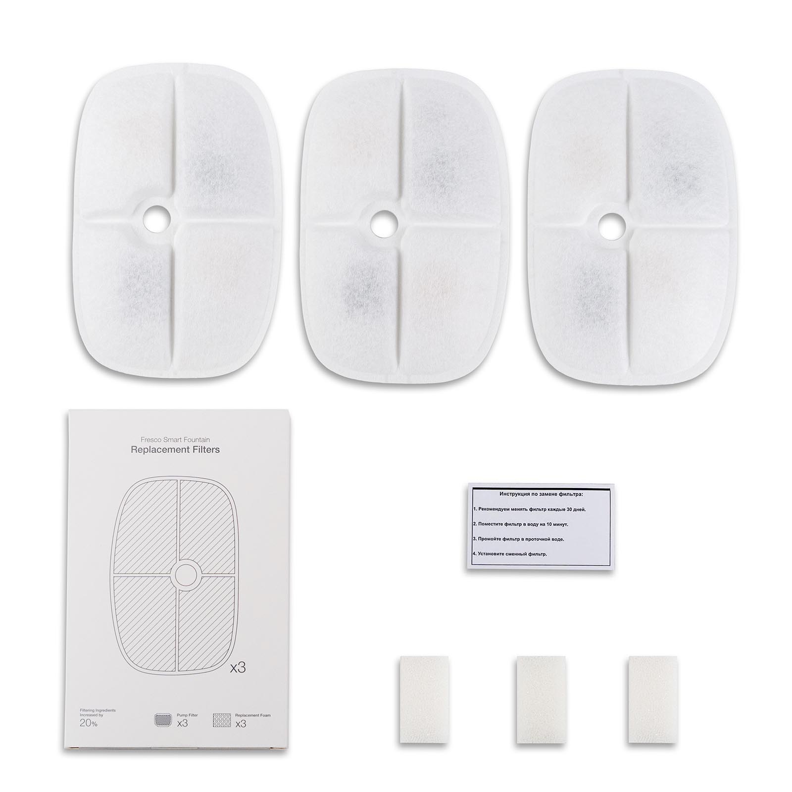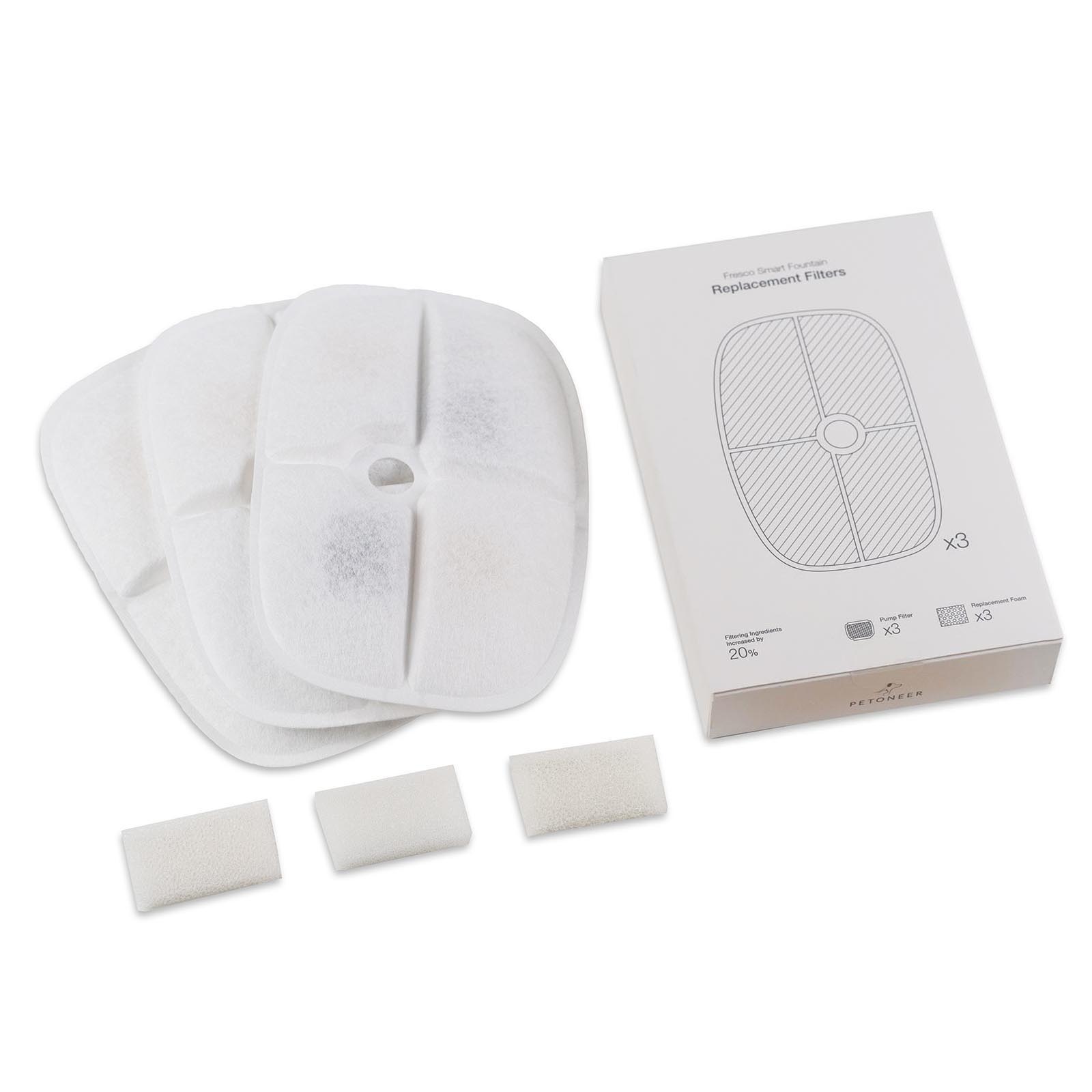 Комплект фильтров для умных поилок-фонтанов Petoneer Fresco Ultra и Fresco Pro – для самостоятельной замены. Каждая кассета рассчитана на 30 дней работы. В комплекте — 3 набора фильтров (основной и губчатый для насоса).