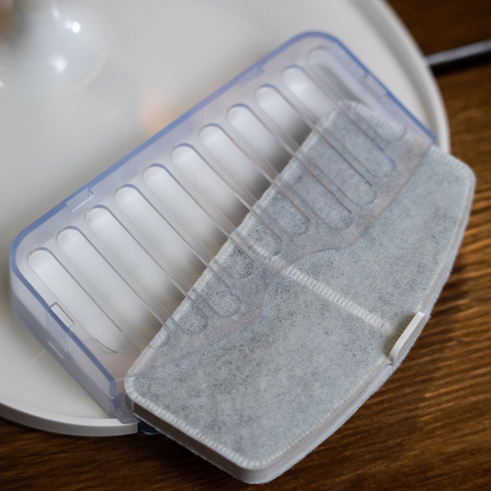 Размеры Petoneer Fresco Mini: 18 × 17,5 × 14,7 см. Объем резервуара с водой — 1,9 л. LED-индикатор предупредит о необходимости смены фильтра (обычно это требуется делать раз в месяц) или долива воды. Кнопка питания и шнур подключения к сети расположены позади устройства.